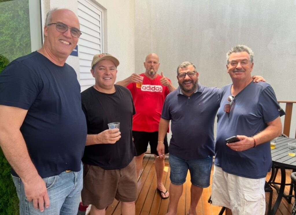 Custório, Flavinho, Capivara, Waltinho e Lageano curtindo o Encontro do Blazer, na sede da Santer, em Piçarras. Amizade, risadas e aquele clima que só encontro de amigos proporciona