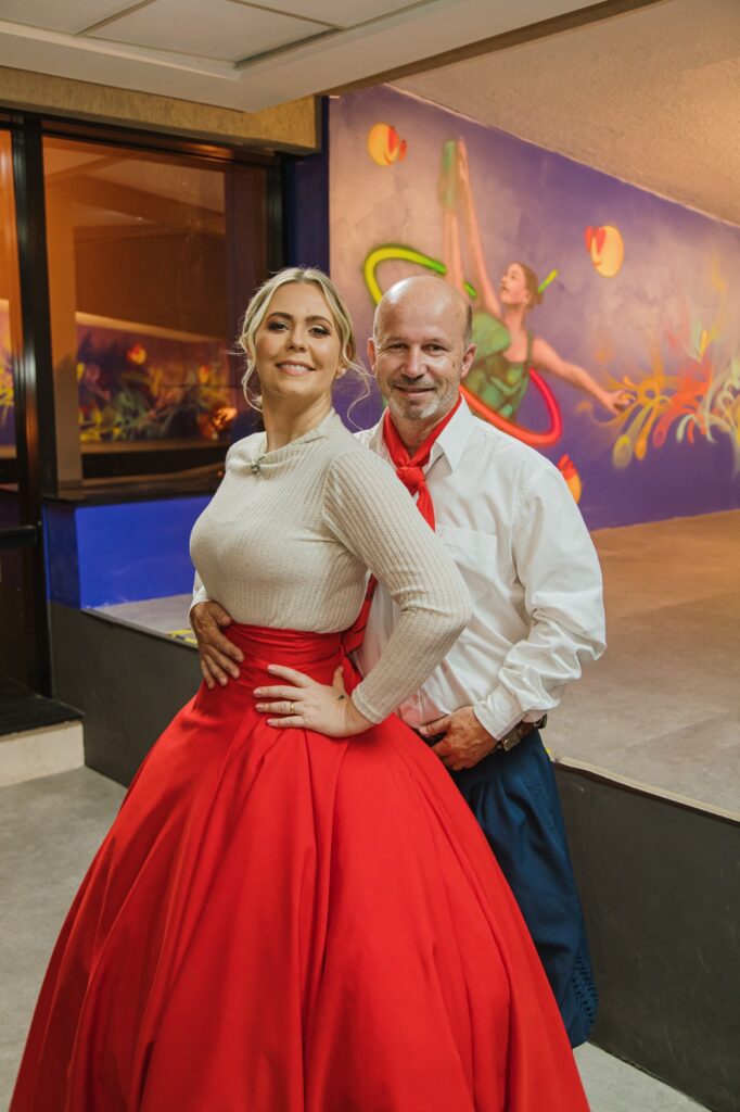 O lindo casal Edilson e Cleidi Ricobom, dois dançarinos incríveis, já estão prontos e com a roupa no capricho para a 4ª Tertúlia – Stammtisch Gaúcha! O evento acontece dia 25 de abril, no Parque Municipal de Eventos, e promete muita música, dança e tradição. Já dá pra sentir a energia e o ritmo tomando conta do lugar!