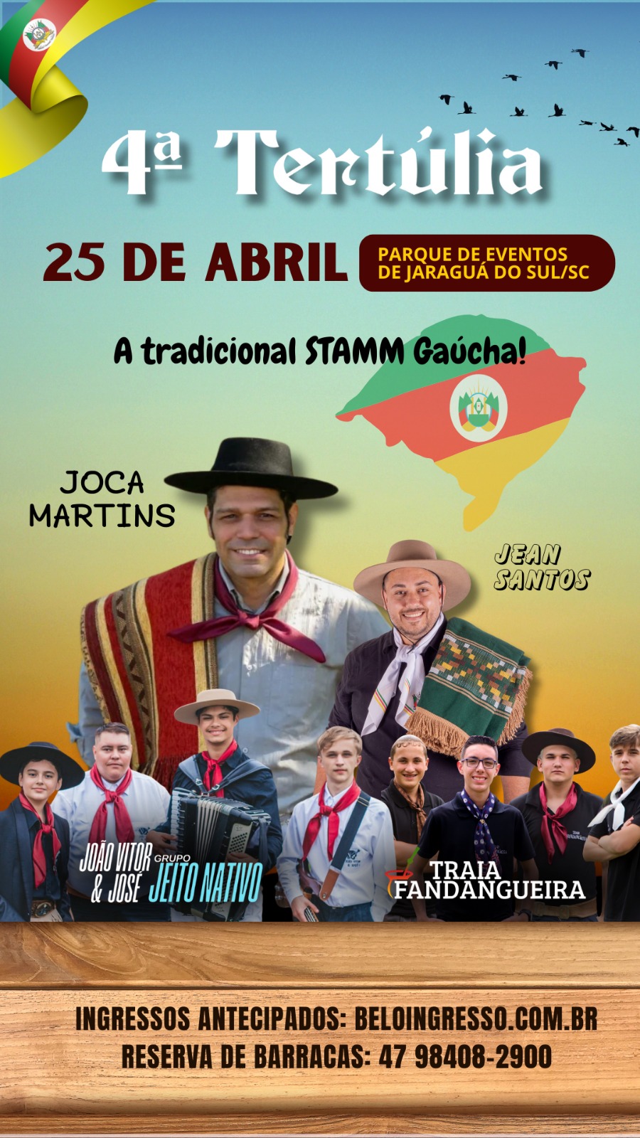 Você já garantiu seu ingresso para a 4ª Tertúlia, a maior Stammtisch gaúcha da região? Ainda não? Então corre! Acesse agora www.beloingresso.com.br e garanta o seu. O evento acontece no dia 25 de abril, no Parque Municipal de Eventos, com muita música, tradição, amizade e aquela energia boa que só a Tertúlia tem. Não fica de fora!
