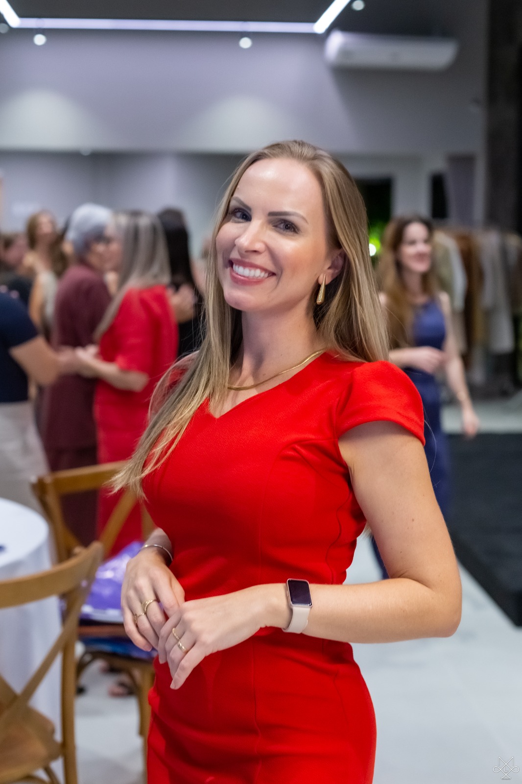 Alinda loira Jéssica Zanini, coordenadora da Agência CIEE/SC de Jaraguá do Sul, marcou presença no concorrido evento “As Imperfeitas”, realizado na última quinta-feira (09), no Floratta Espaço de Eventos.