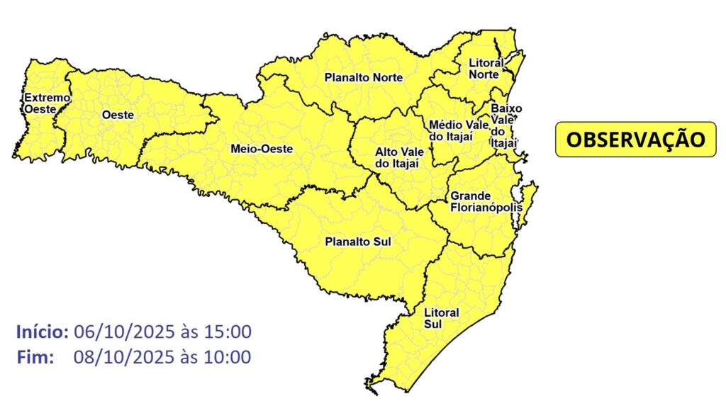 A Secretaria de Proteção e Defesa Civil de Santa Catarina (SPDC/SC) reforça a importância de acompanhar diariamente os boletins e avisos meteorológicos oficiais, devido às constantes atualizações nos modelos de previsão do tempo. As informações estão disponíveis no site e nas redes oficiais da SPDC/SC.